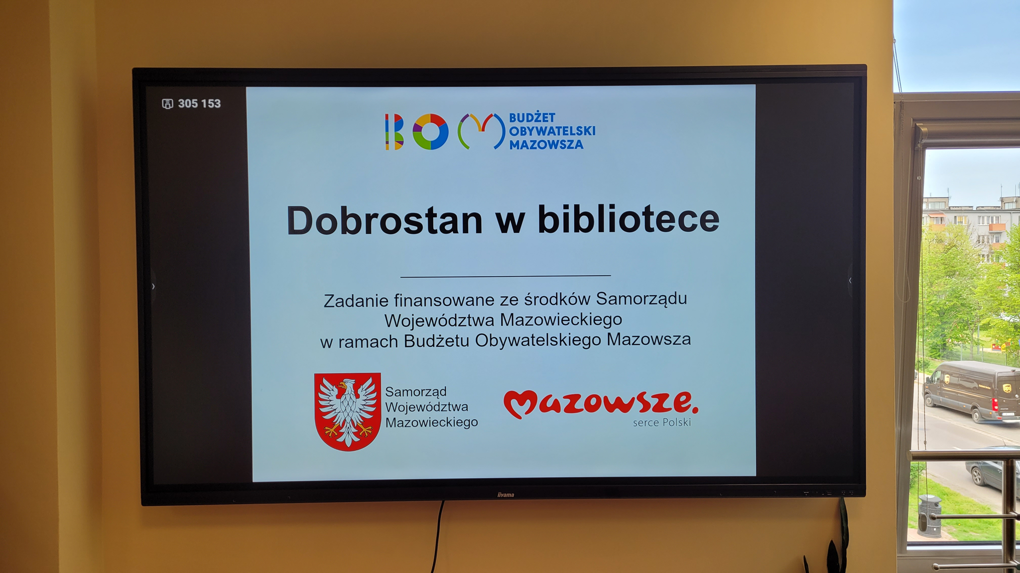 Podczas zajęć z uczniami szkół średnich wykorzystywaliśmy interaktywny monitor dotykowy, którego zakup został sfinansowany ze środków Samorządu Województwa Mazowieckiego w ramach realizacji projektu Budżetu Obywatelskiego Mazowsza „Dobrostan w bibliotece”.